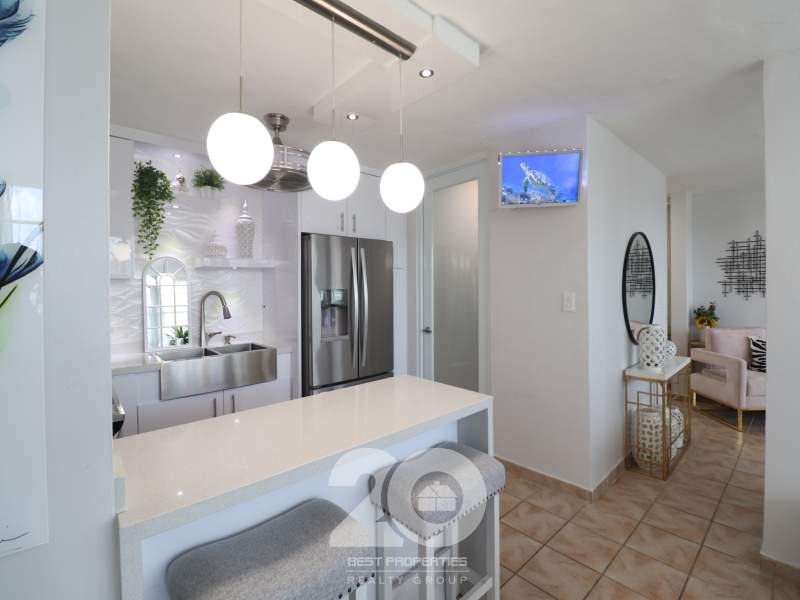 Hermoso apartamento completamente remodelado en cuarto nivel, sube un set de escaleras, consta de 3 habitaciones, 2 baños remodelados, sala, comedor, moderna cocina en PVC con tope en cuarzo, alacena, balcón y laundry. Incluye nevera, estufa, lavadora, secadora, microondas, 5 abanicos, (2) lamparas, puertas en aluminio, calentador, 4 aires inverters y facias! Cuenta con 2 estacionamientos uno al lado de otro. 1,472 SQFT / HOA: $109.97. El complejo cuenta con acceso controlado, seguridad 24/7, áreas recreativas con piscina, area para mascotas, cancha de baloncesto, volleyball, gimnasio, gazebos y parque pasivo. ¡Haga su cita hoy mismo! SOMOS SU ALTERNATIVA SEGURA ✅ |